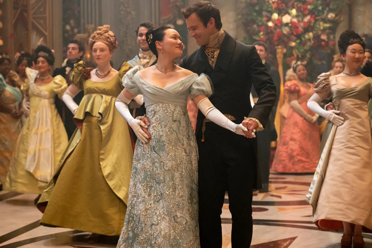 Please enjoy our gallery of Bridgerton dance images below and check back to those moments in the shows to see what sort of dances we will be doing at the ball!